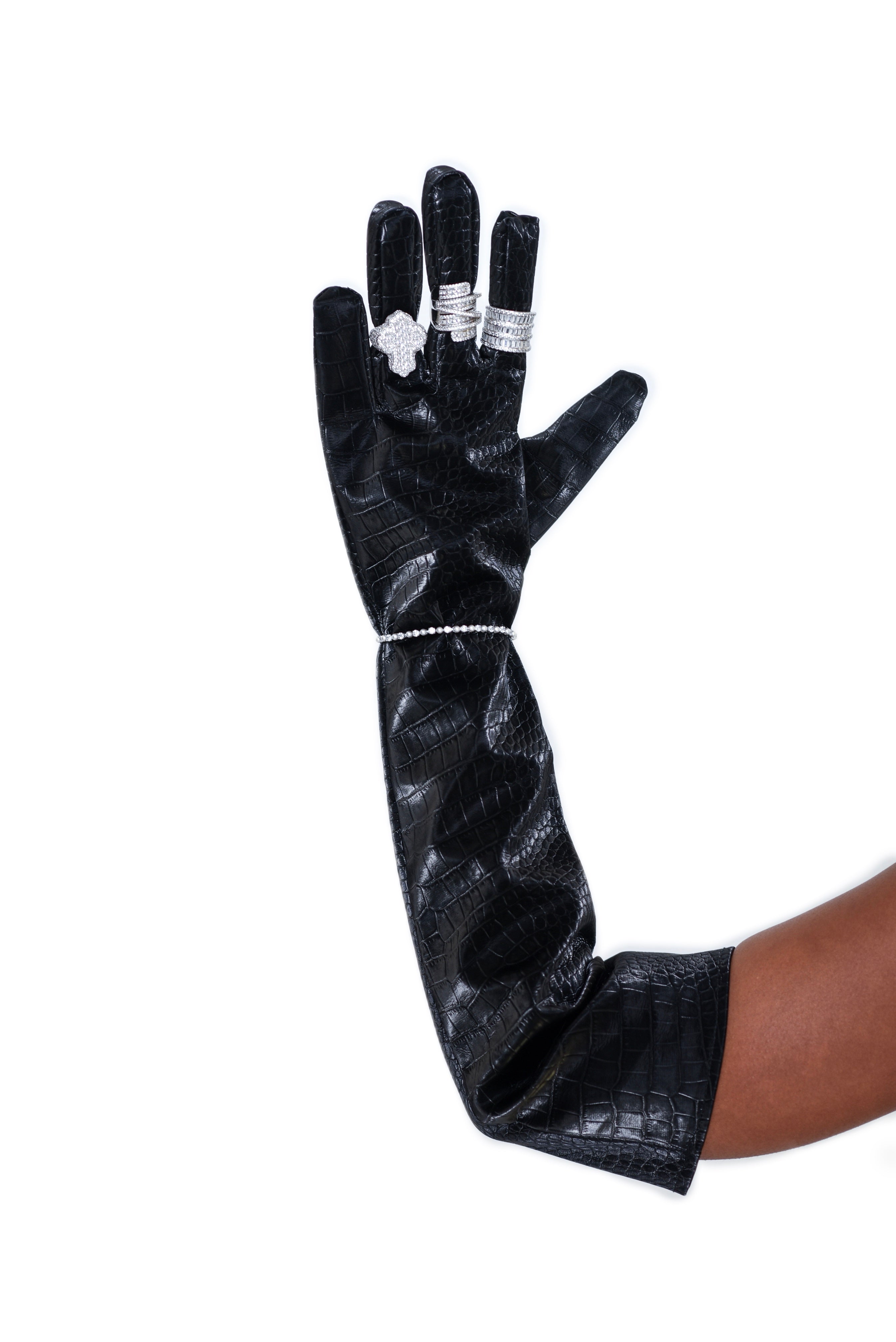 Faux fur leg warmers cut to the knee with a structured silhouette. Designed to be worn with or without black rope detailing. Finished with an inner stretch band and rear loop for attachment. Built for versatility without compromise.